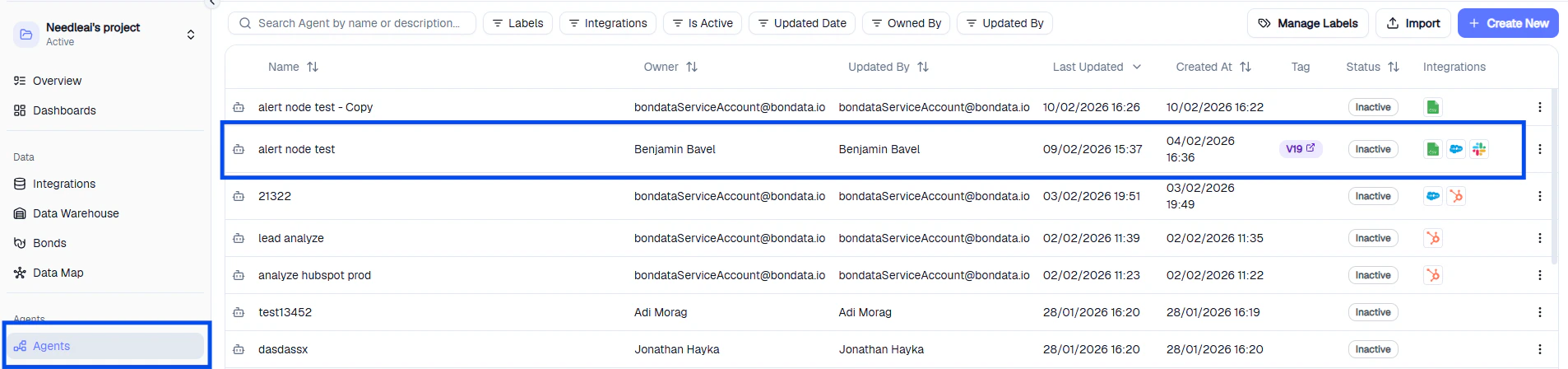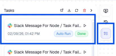 - Task List — hover over the task list (top right) to see tasks generated by the Agent, including alert messages