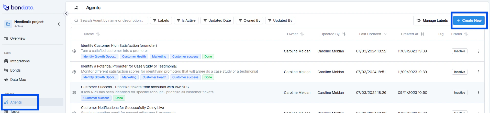 - Agent Dashboard — access via the three-dots menu next to Activate