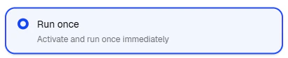 - Run once — executes a single time