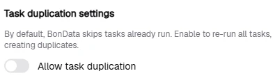 - Off (default) — won’t create duplicate tasks for the same matched record